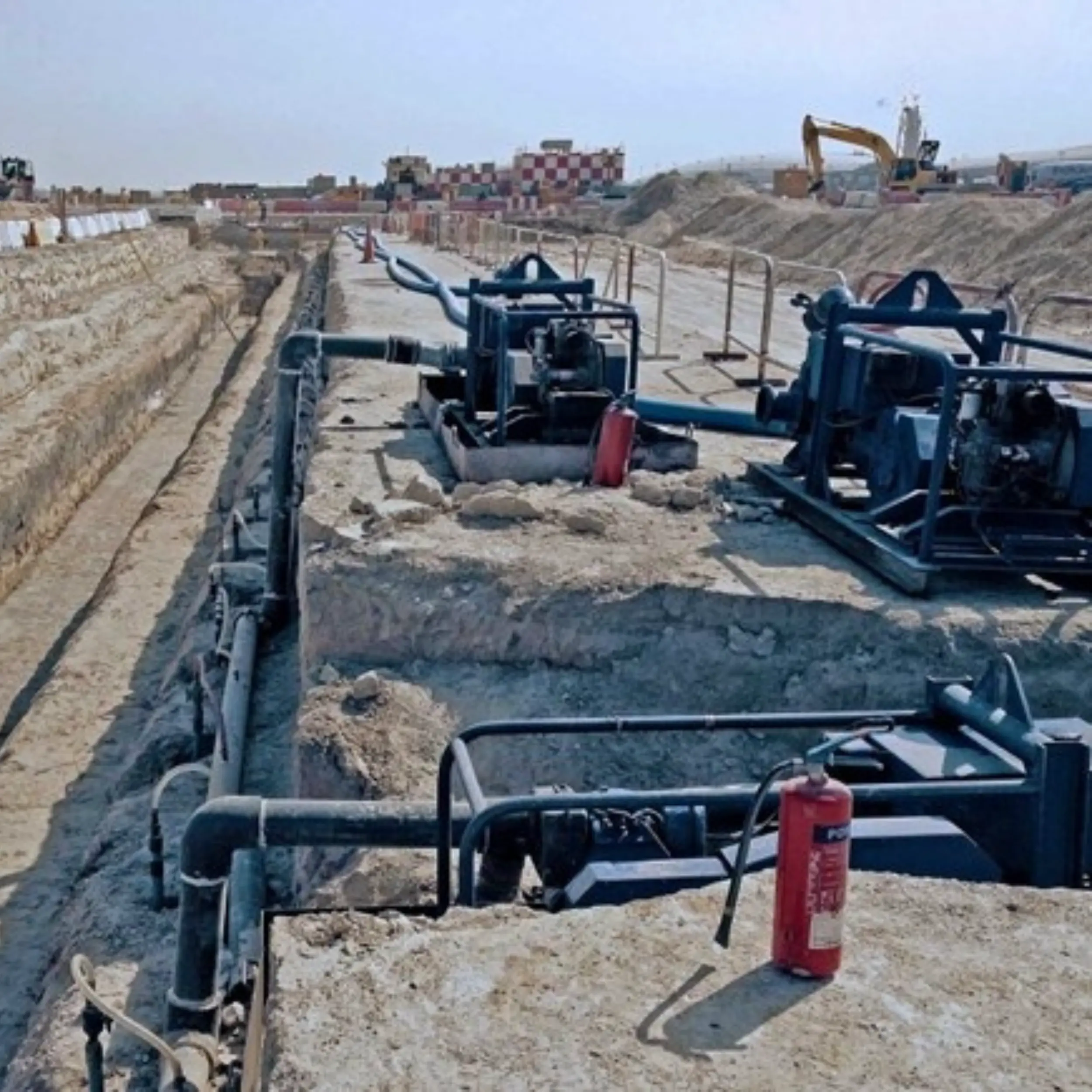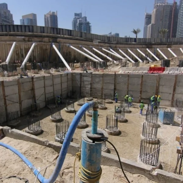 Technique for extracting surface and groundwater from construction sites to ensure a dry, stable workspace, crucial for safety, soil integrity, and the successful execution of underground projects.
